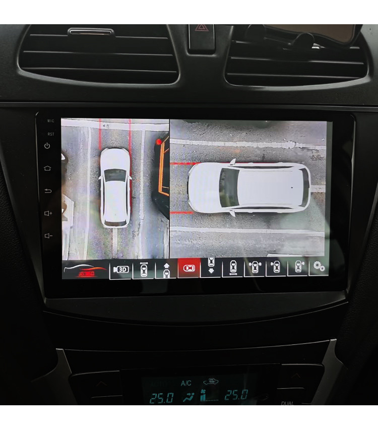 The system provides a full 360° view around the vehicle, ensuring complete visibility of the surroundings. This feature helps eliminate blind spots and provides safer parking and reversing by giving drivers a clear view of obstacles, pedestrians, and other vehicles.